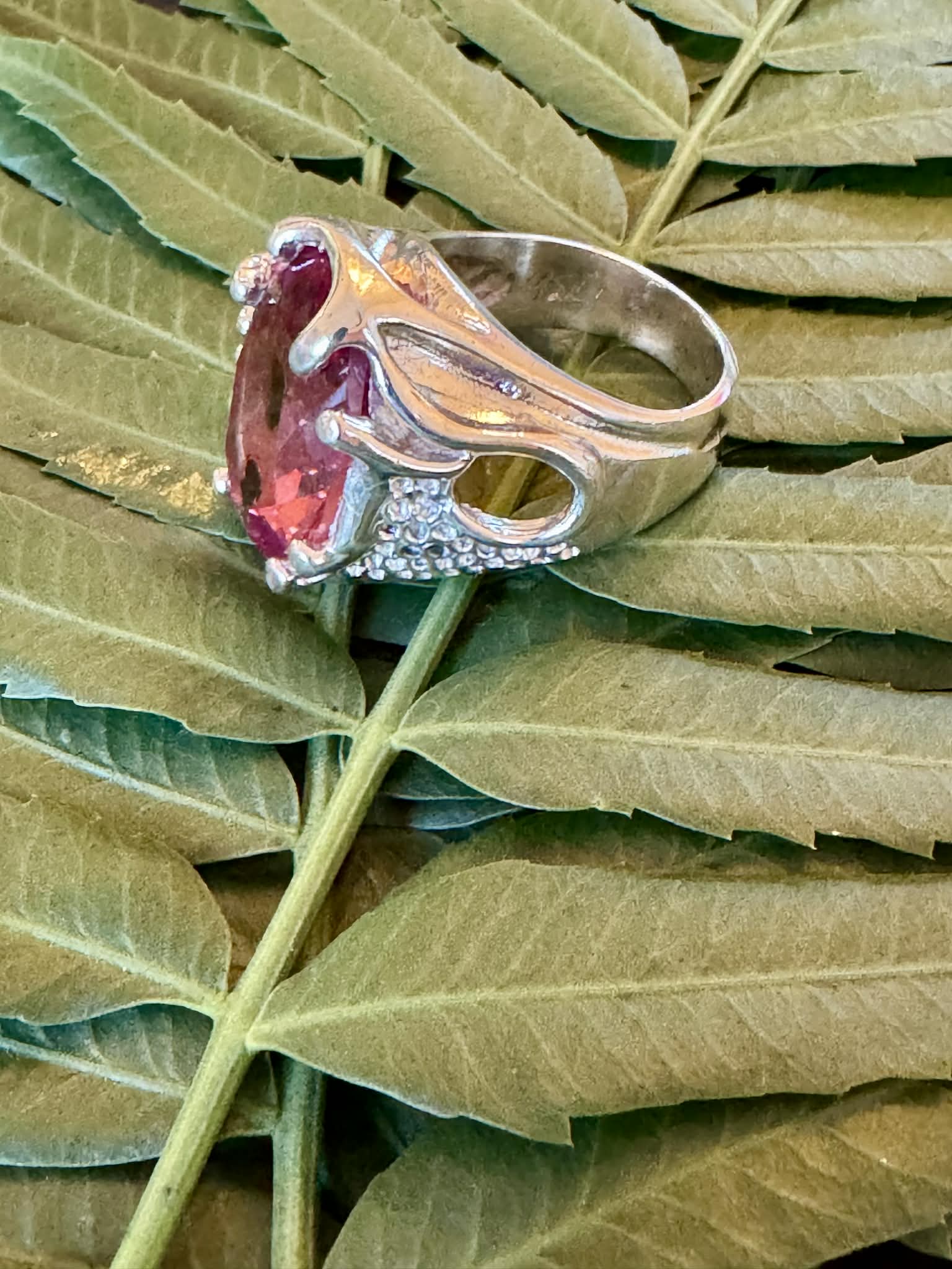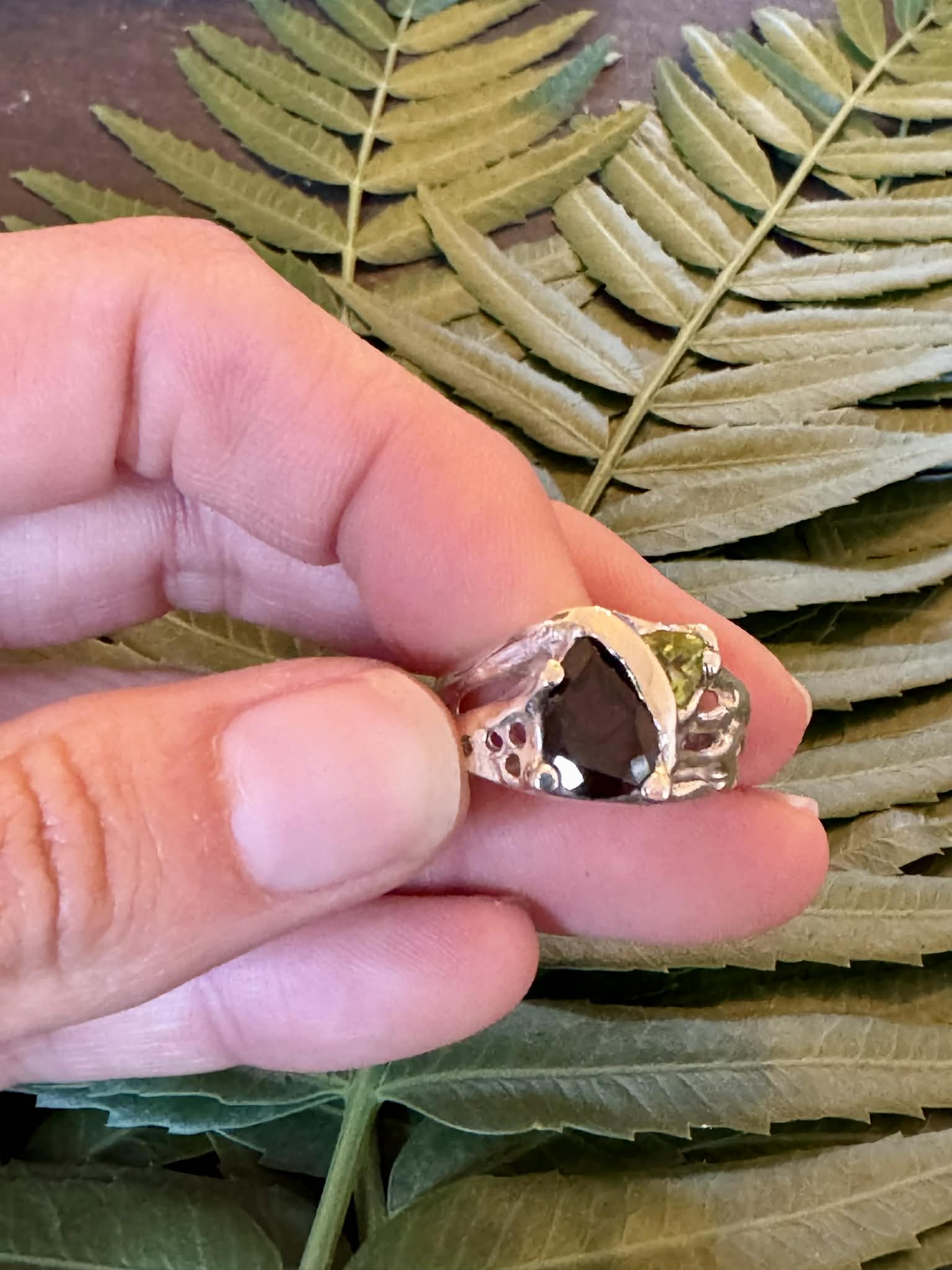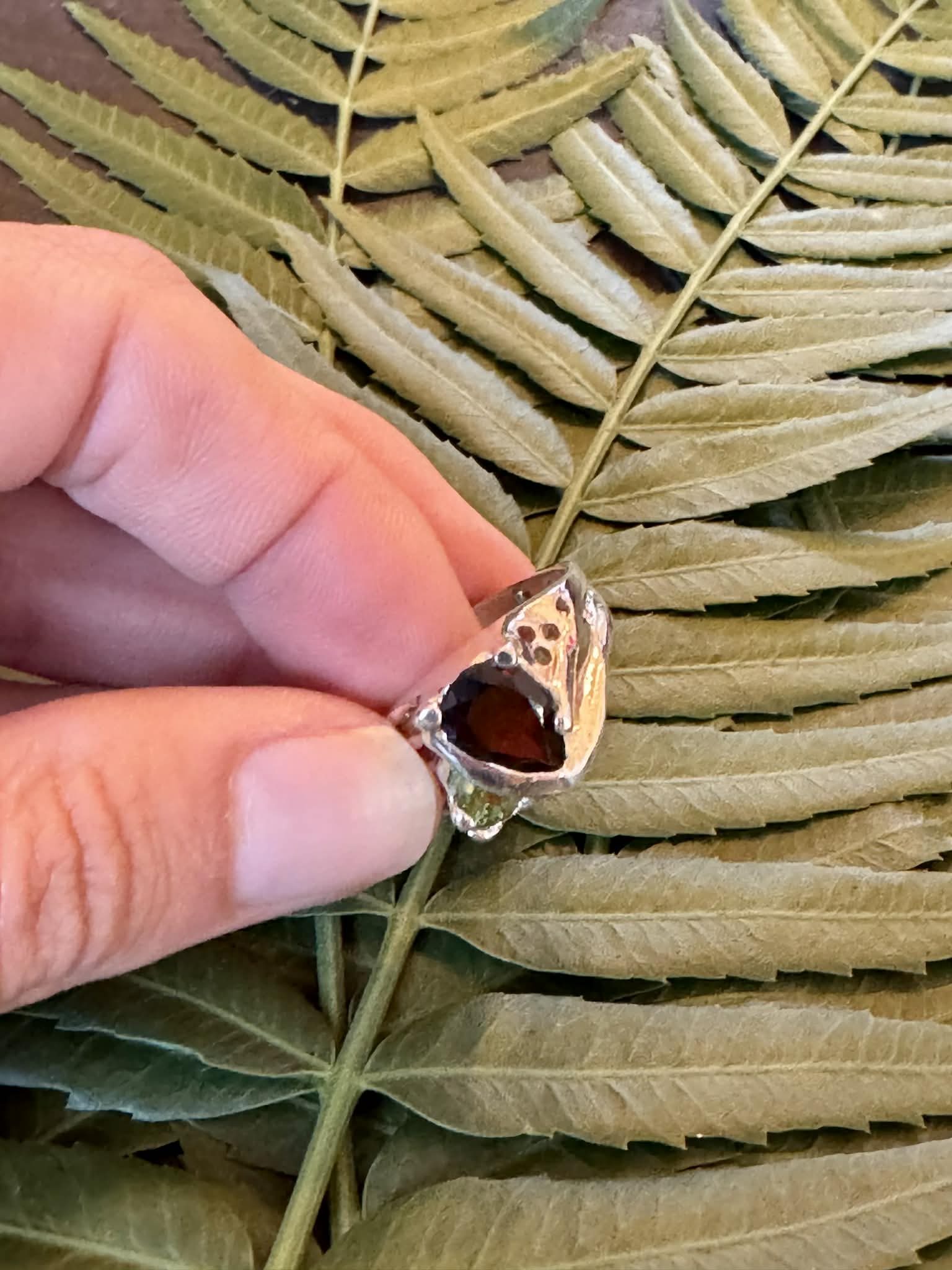 Silver Garnet and Peridot Ring Size 9.5