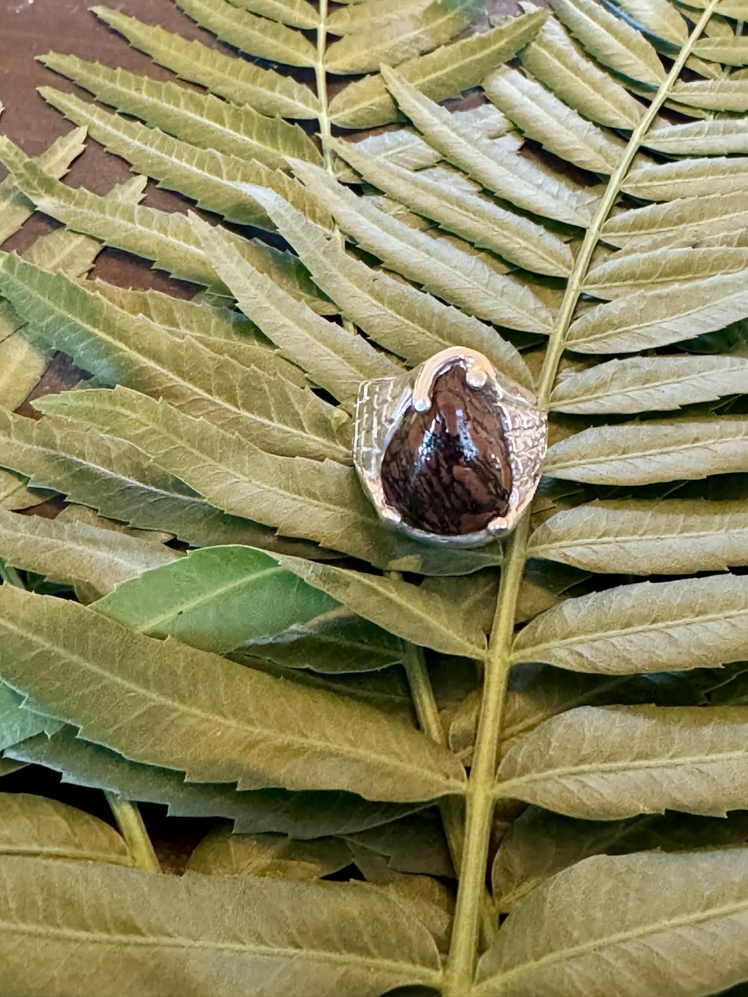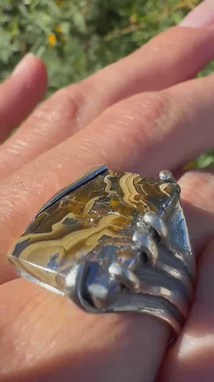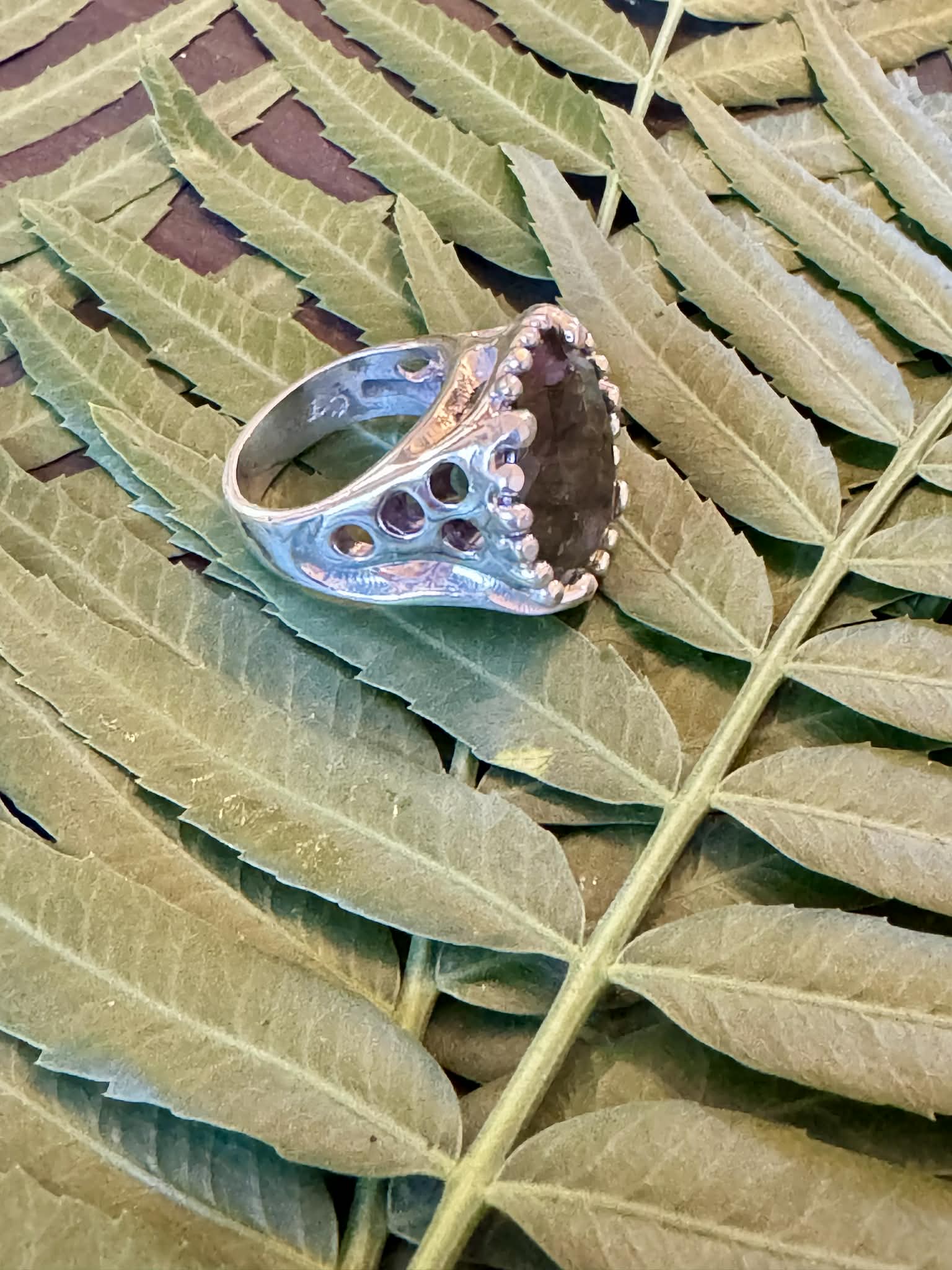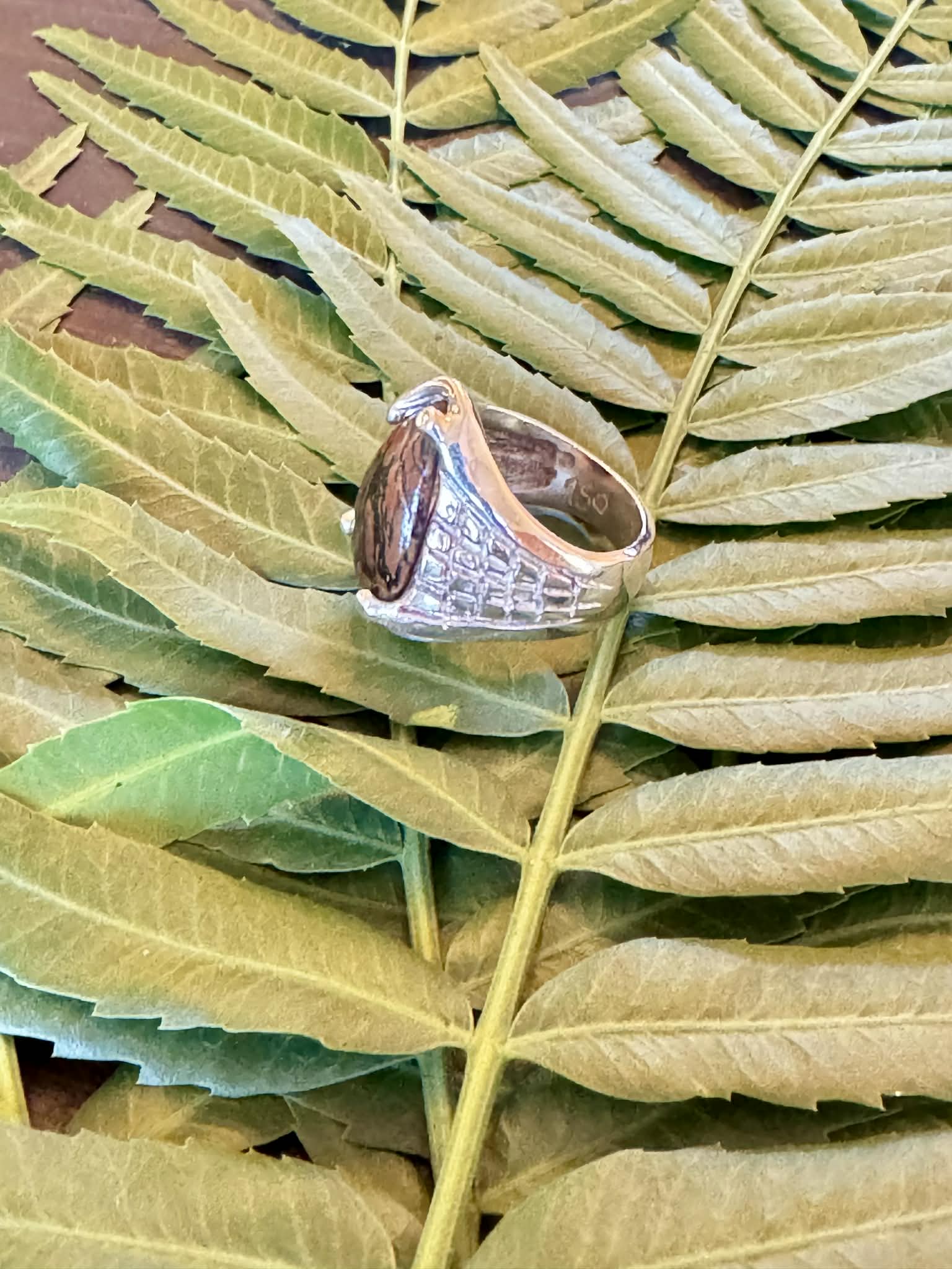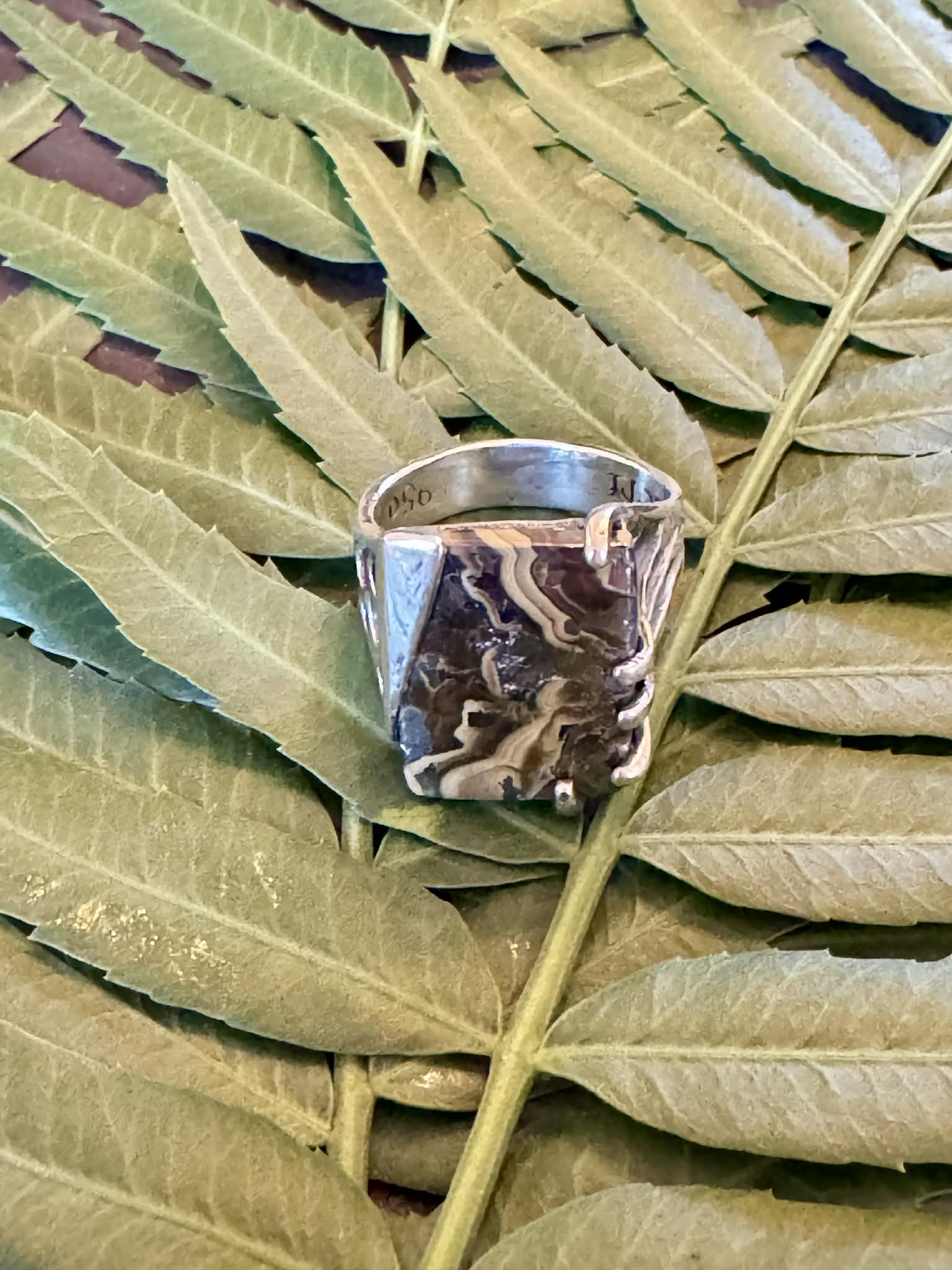 Silver Petrified Bone Ring Size 7.5