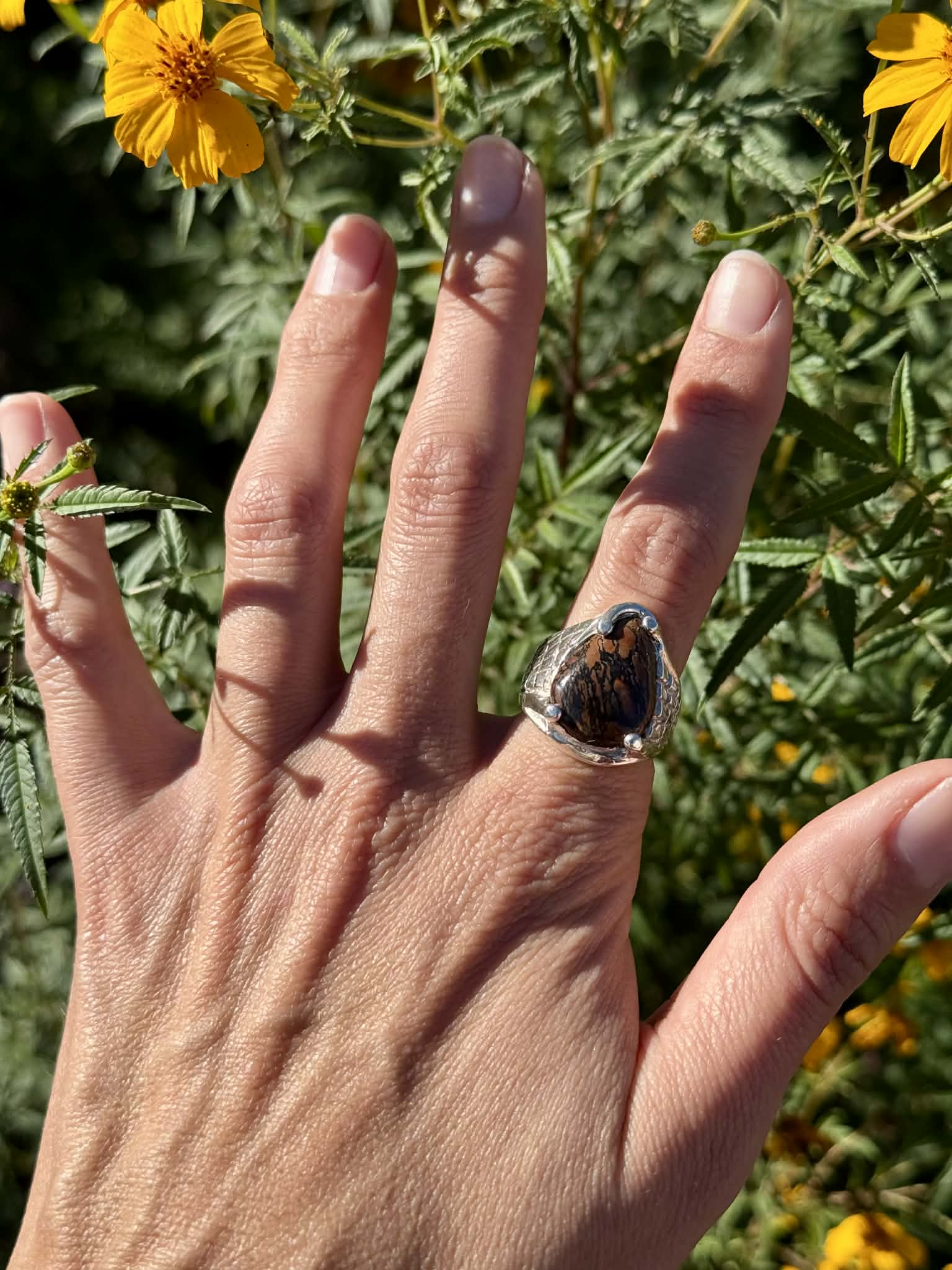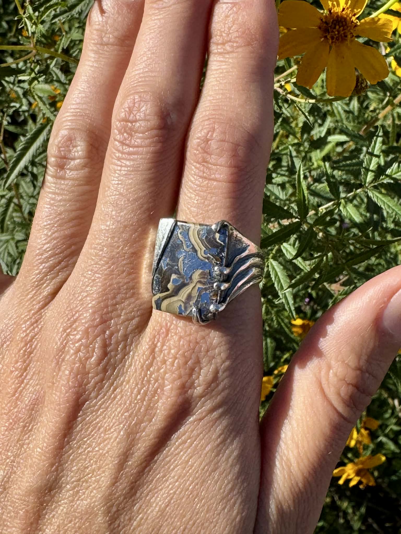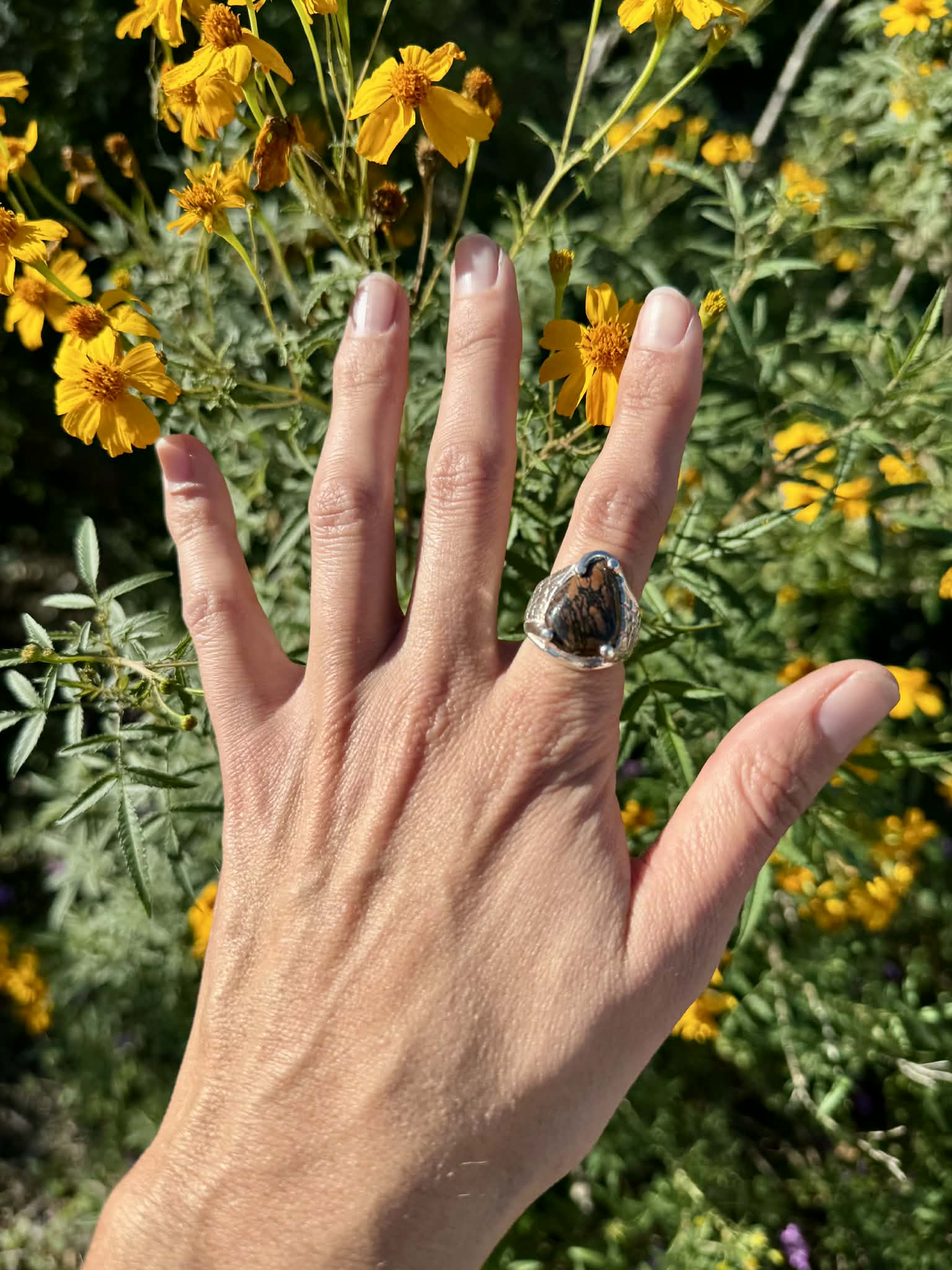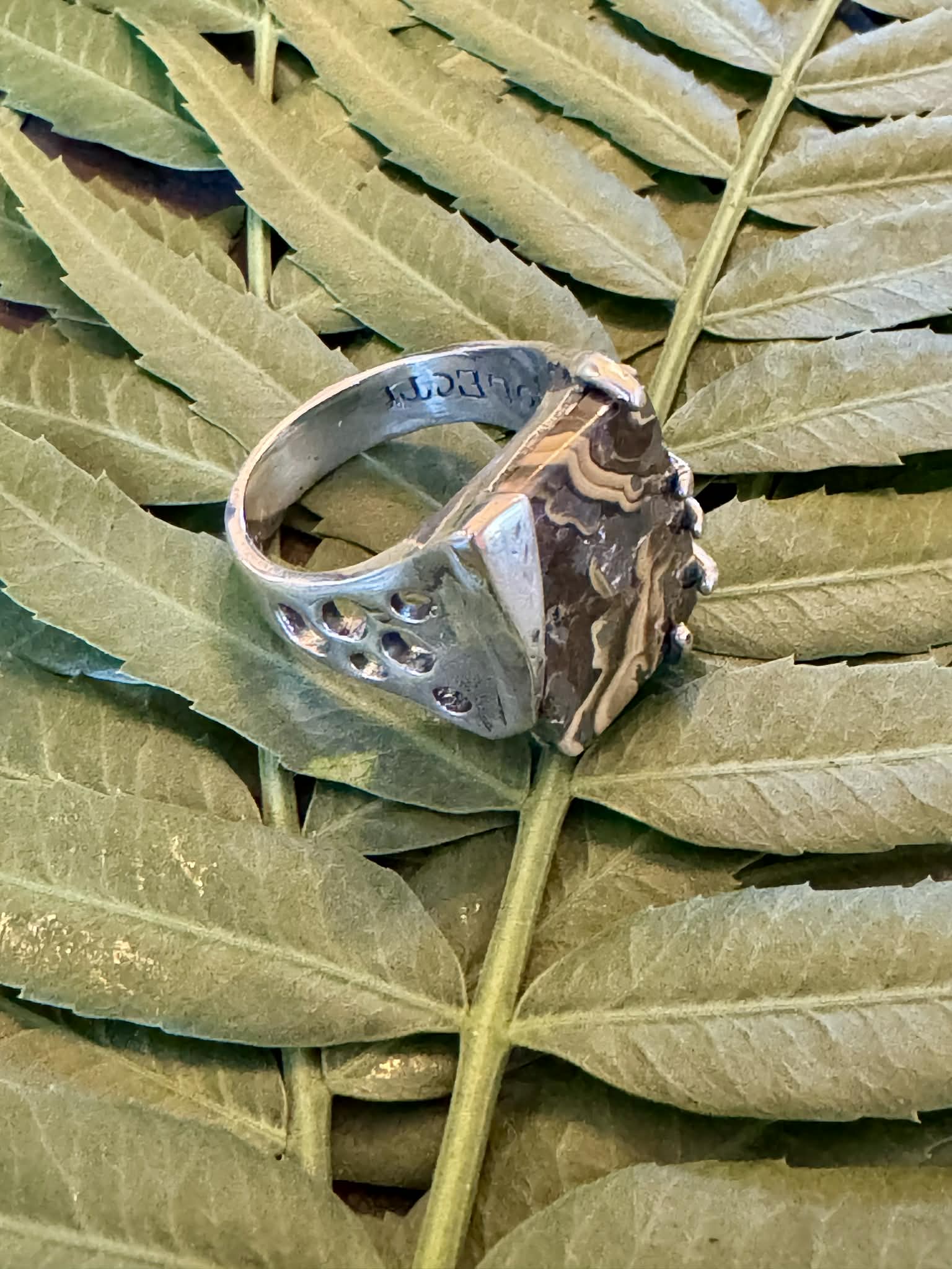 Silver Petrified Bone Ring Size 7.5