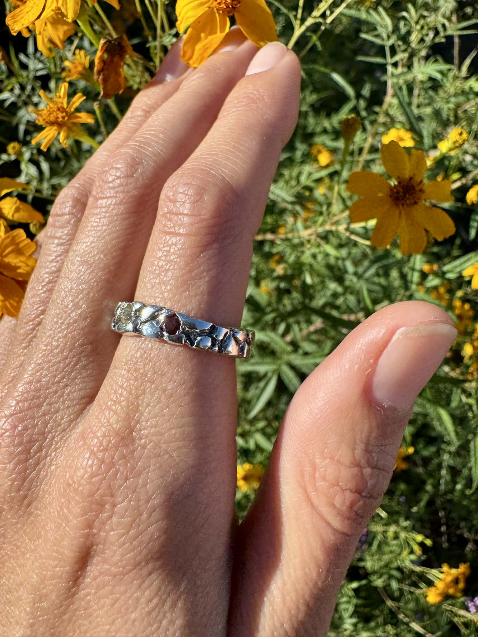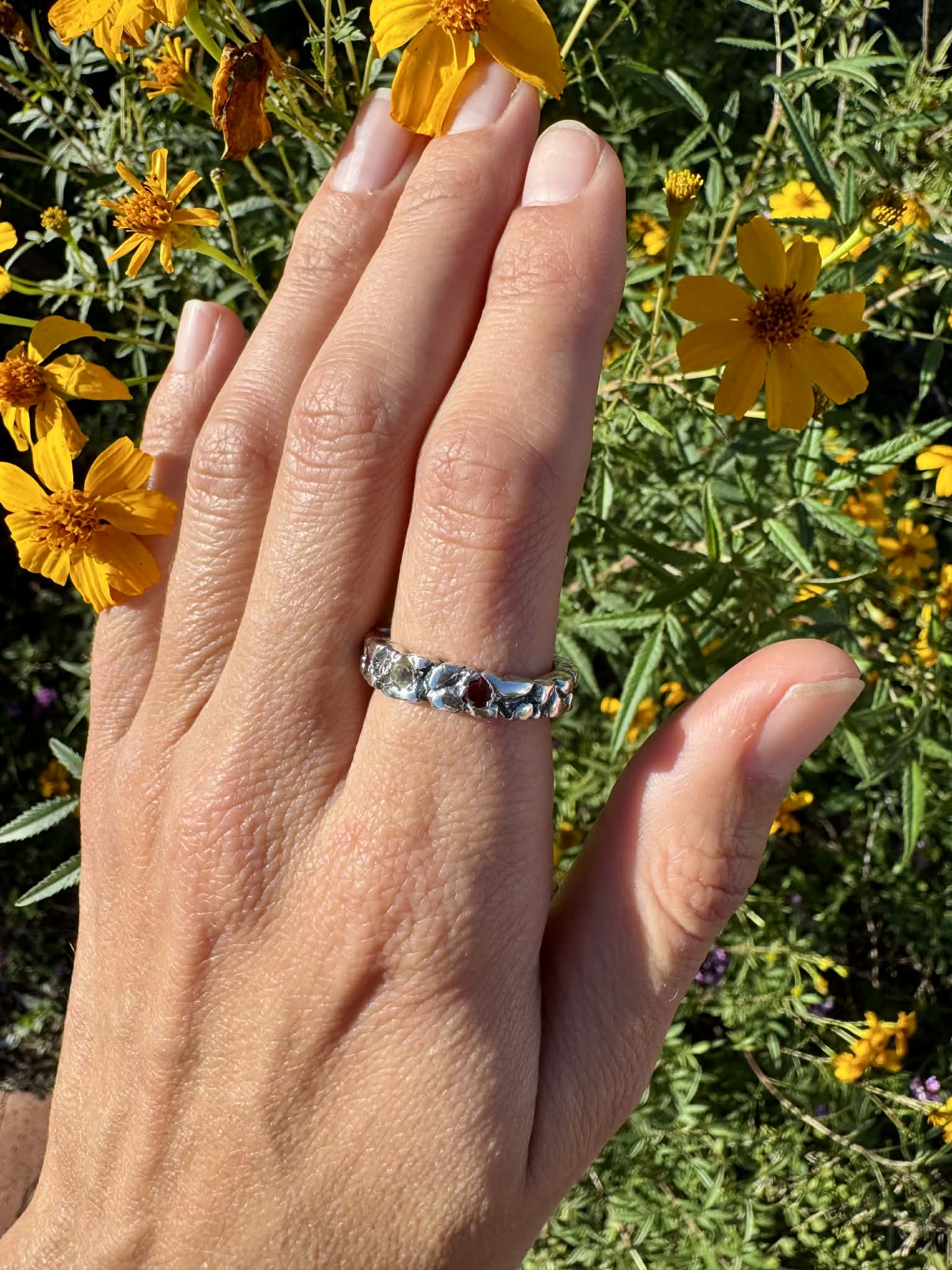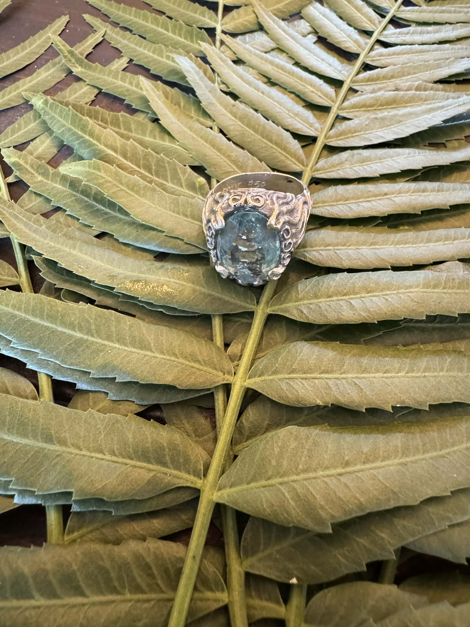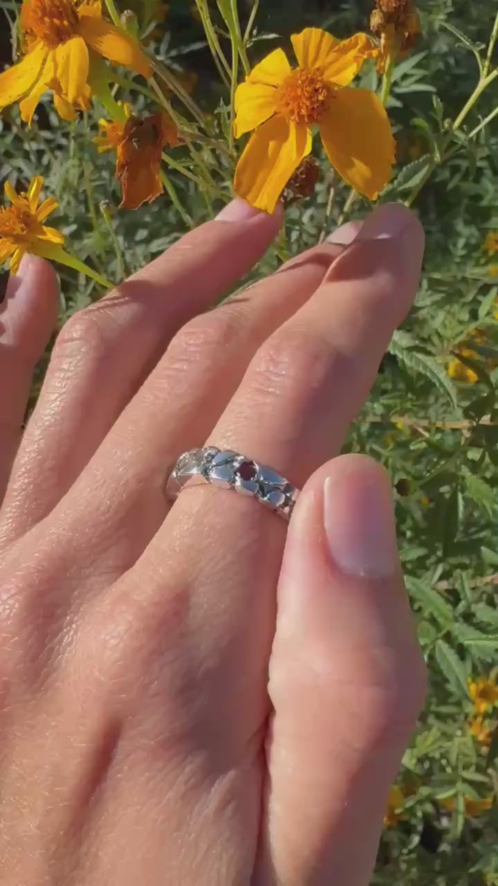 Silver 950 Textured Ring with Stones