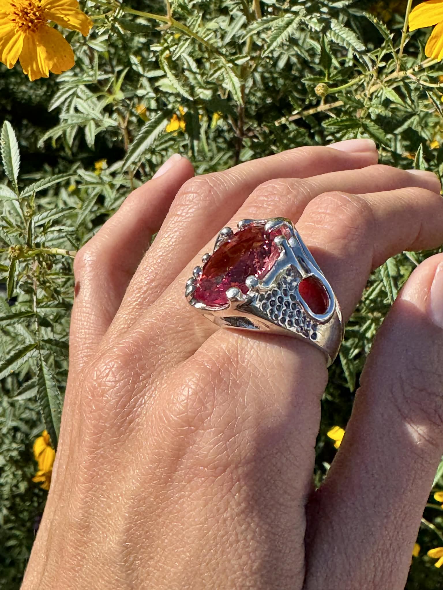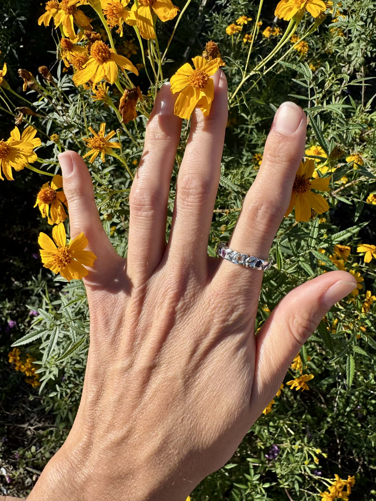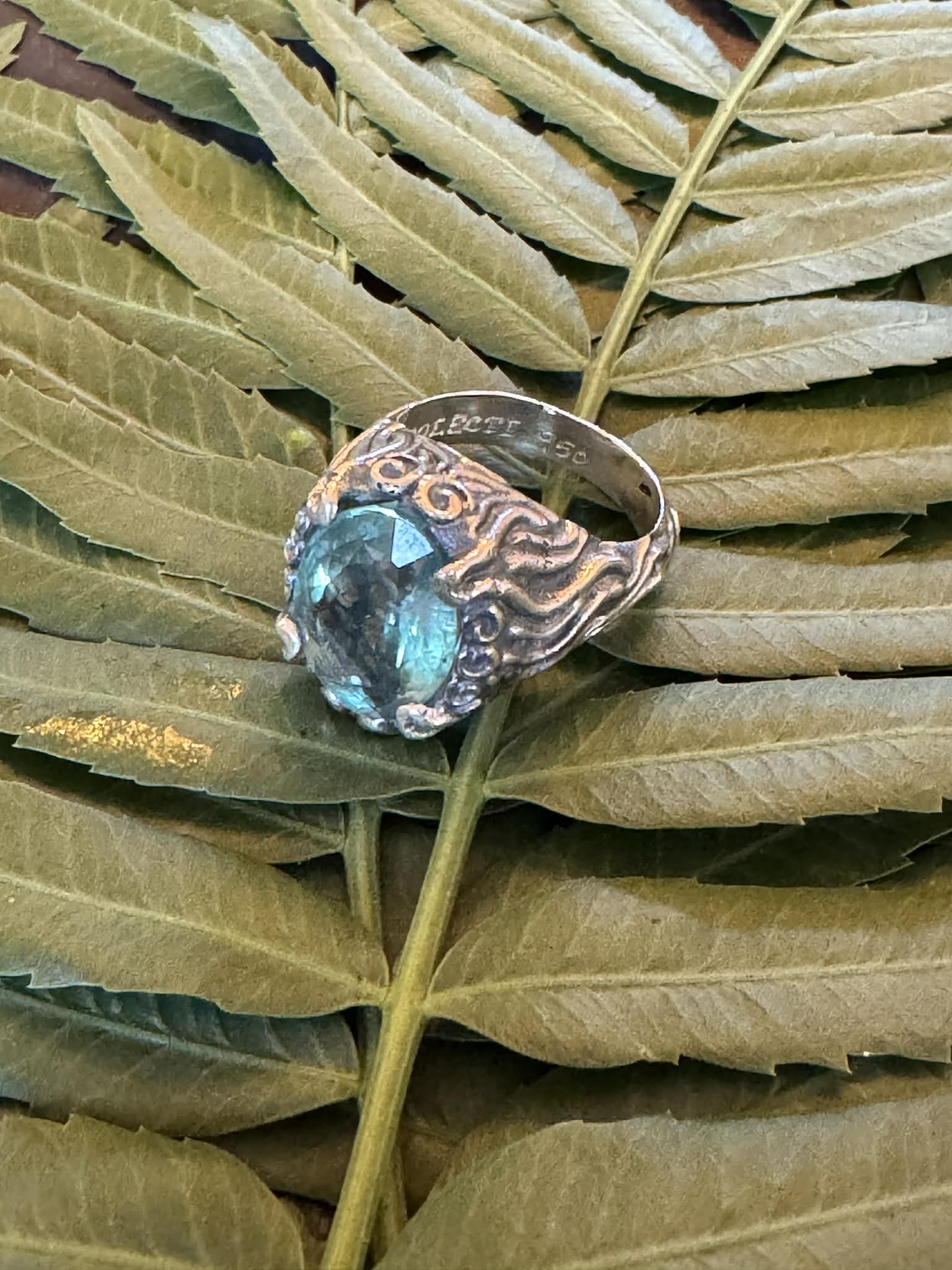Silver 950 Textured Ring with Stones