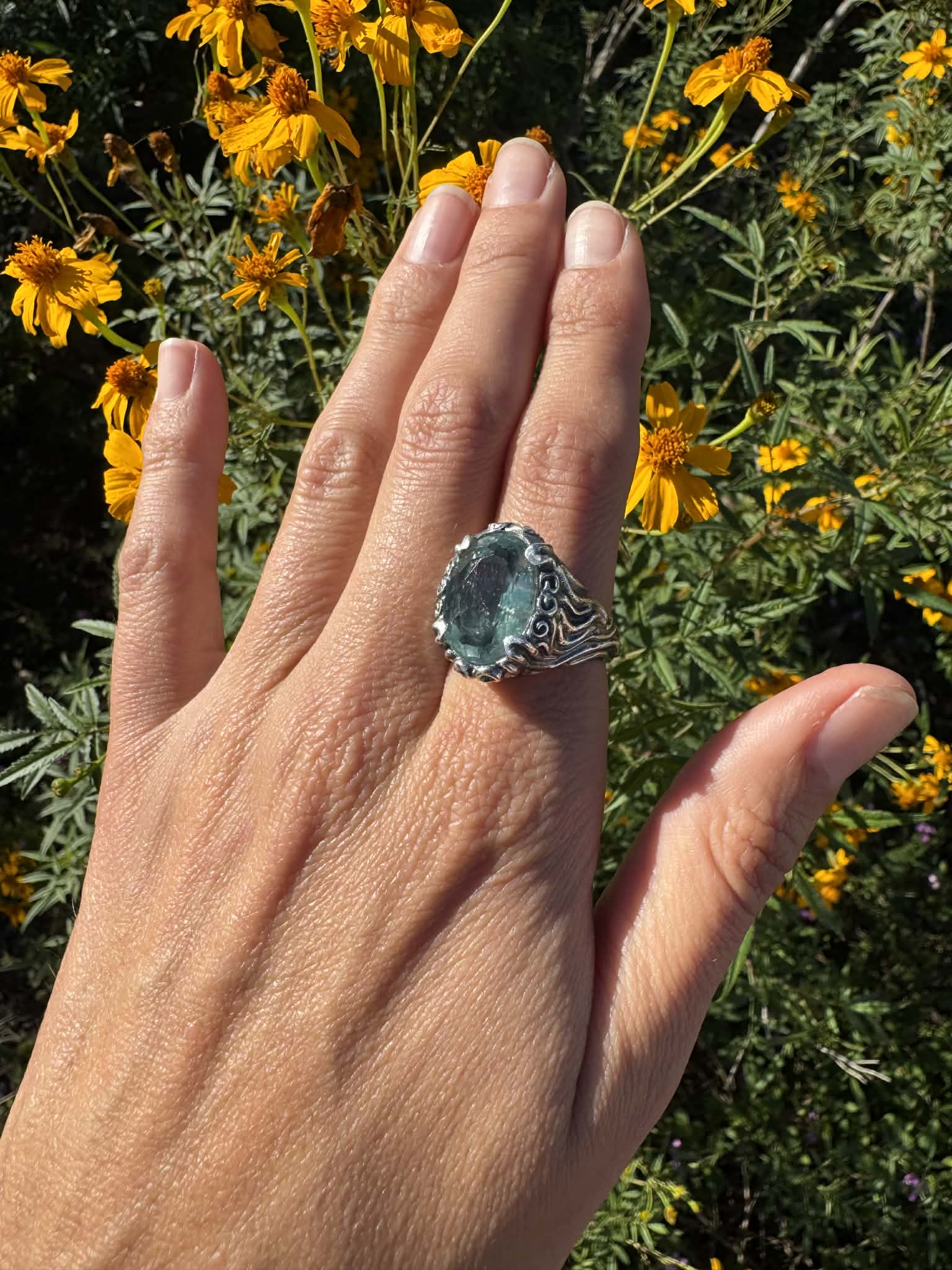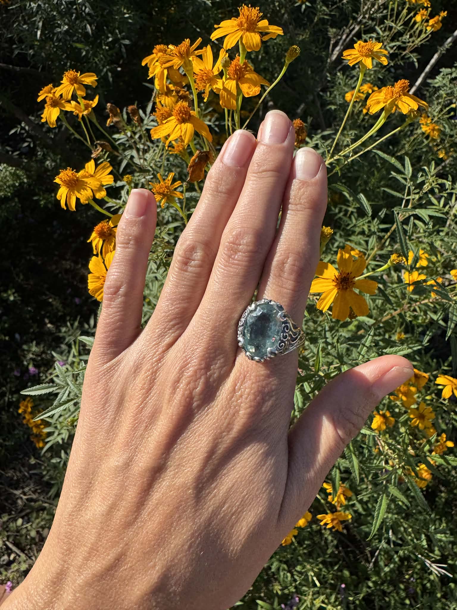 Green Amethyst Ring Size 8.5