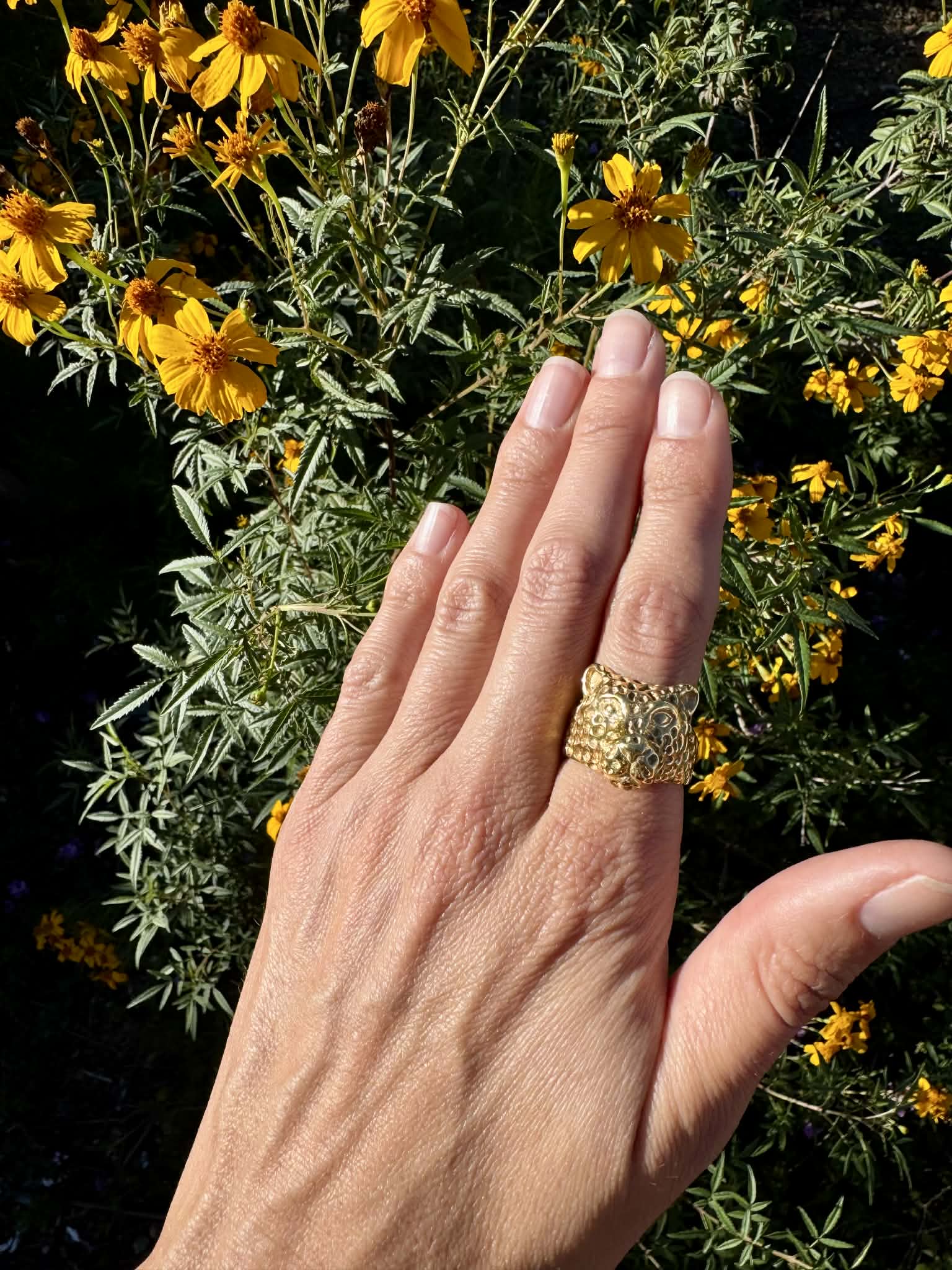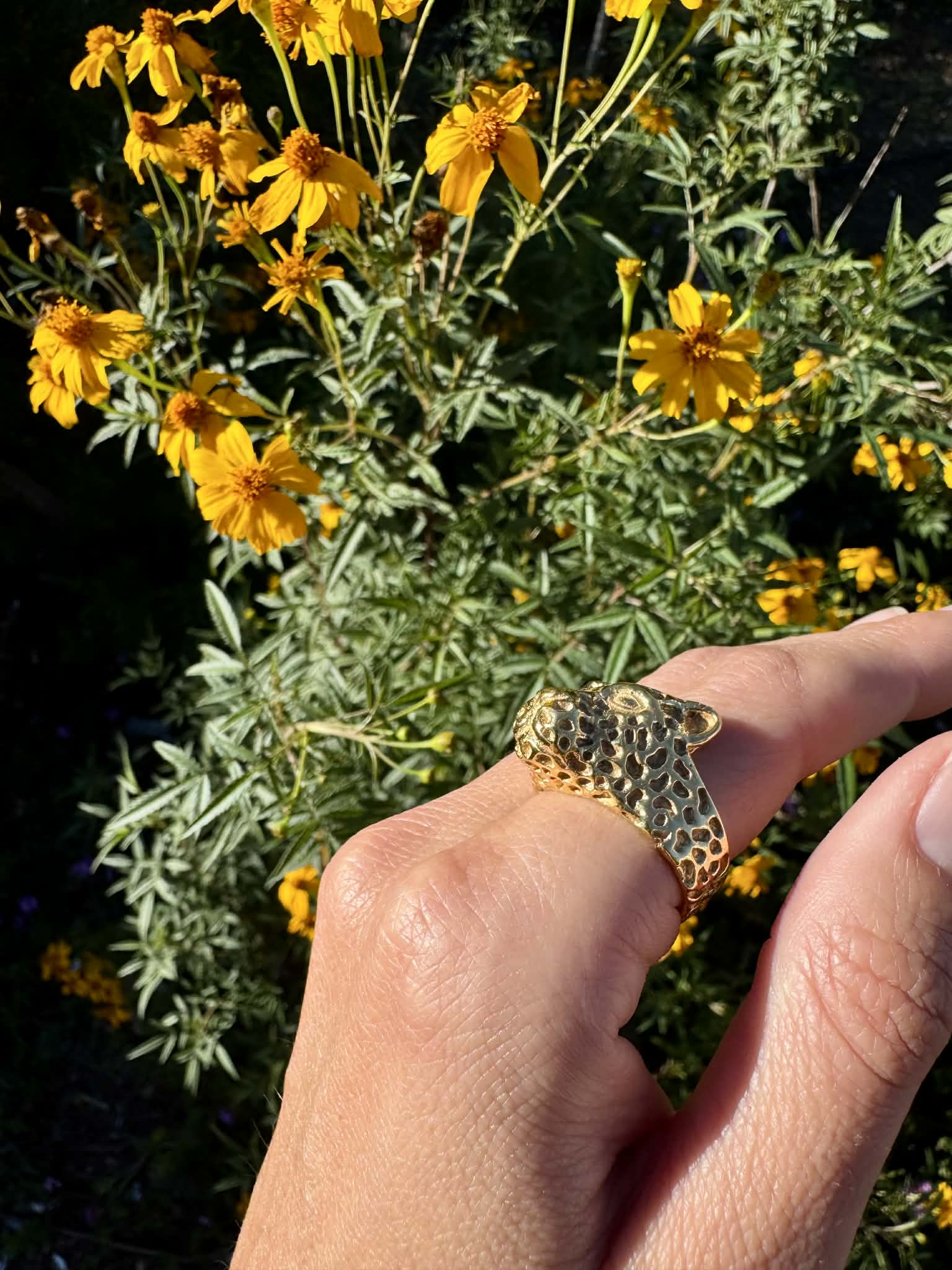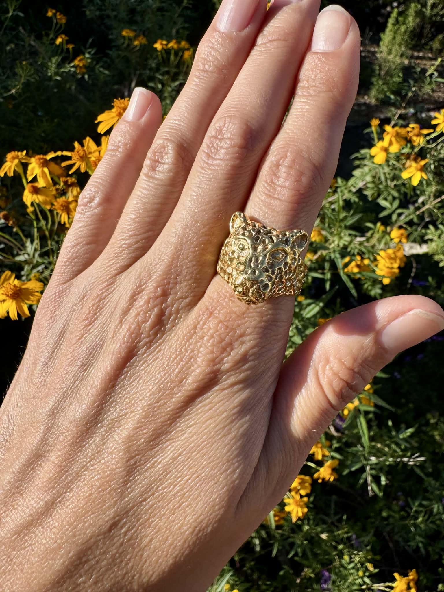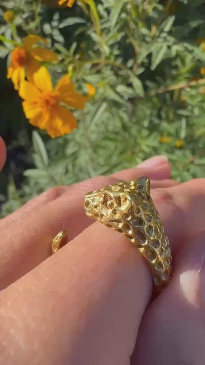 Gold Plated Jaguar Head Ring Size 9