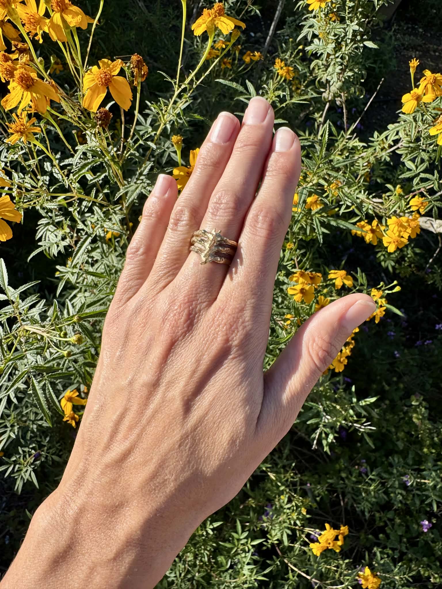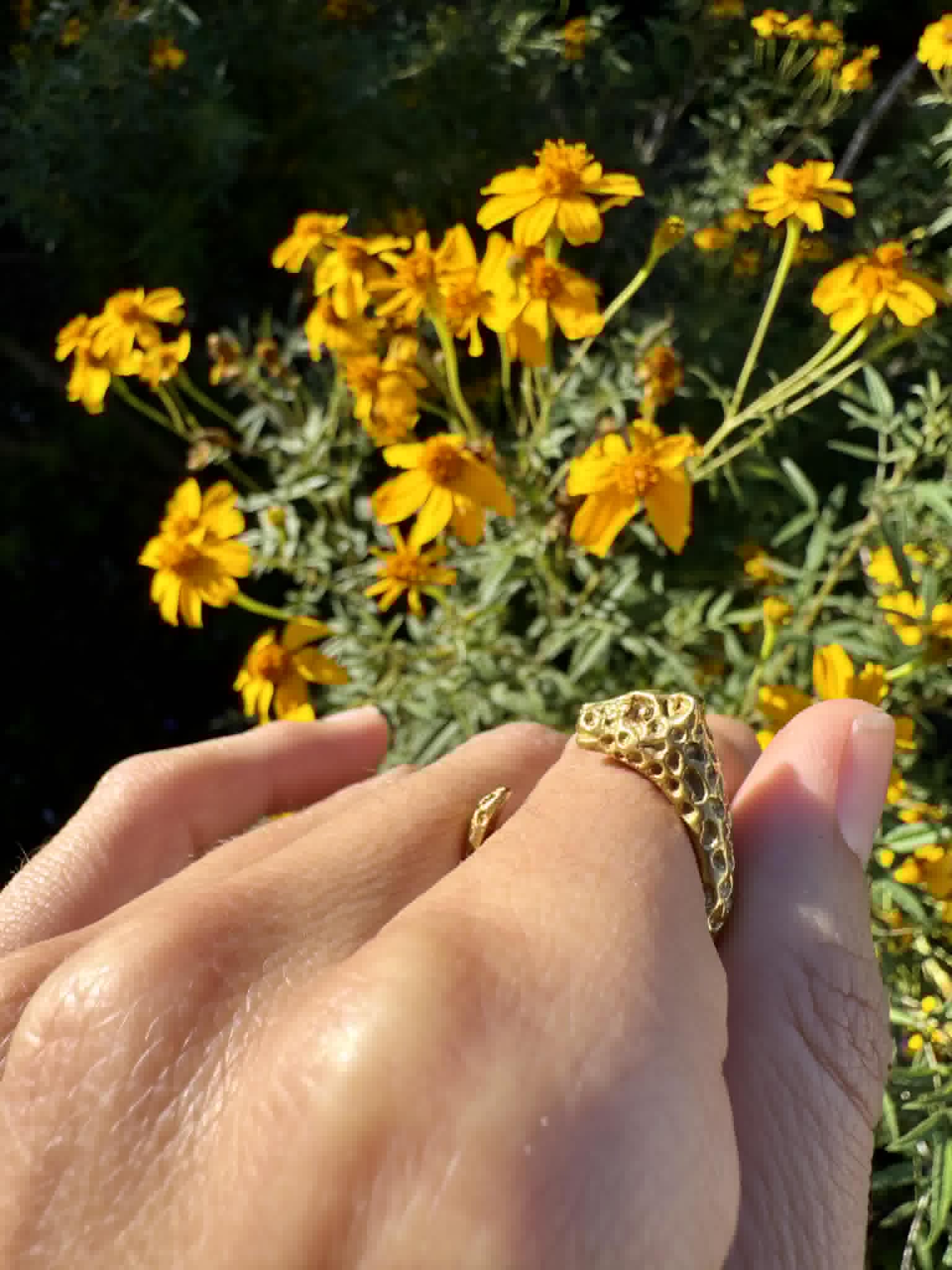 Gold Plated Vertebrae Ring Size 7