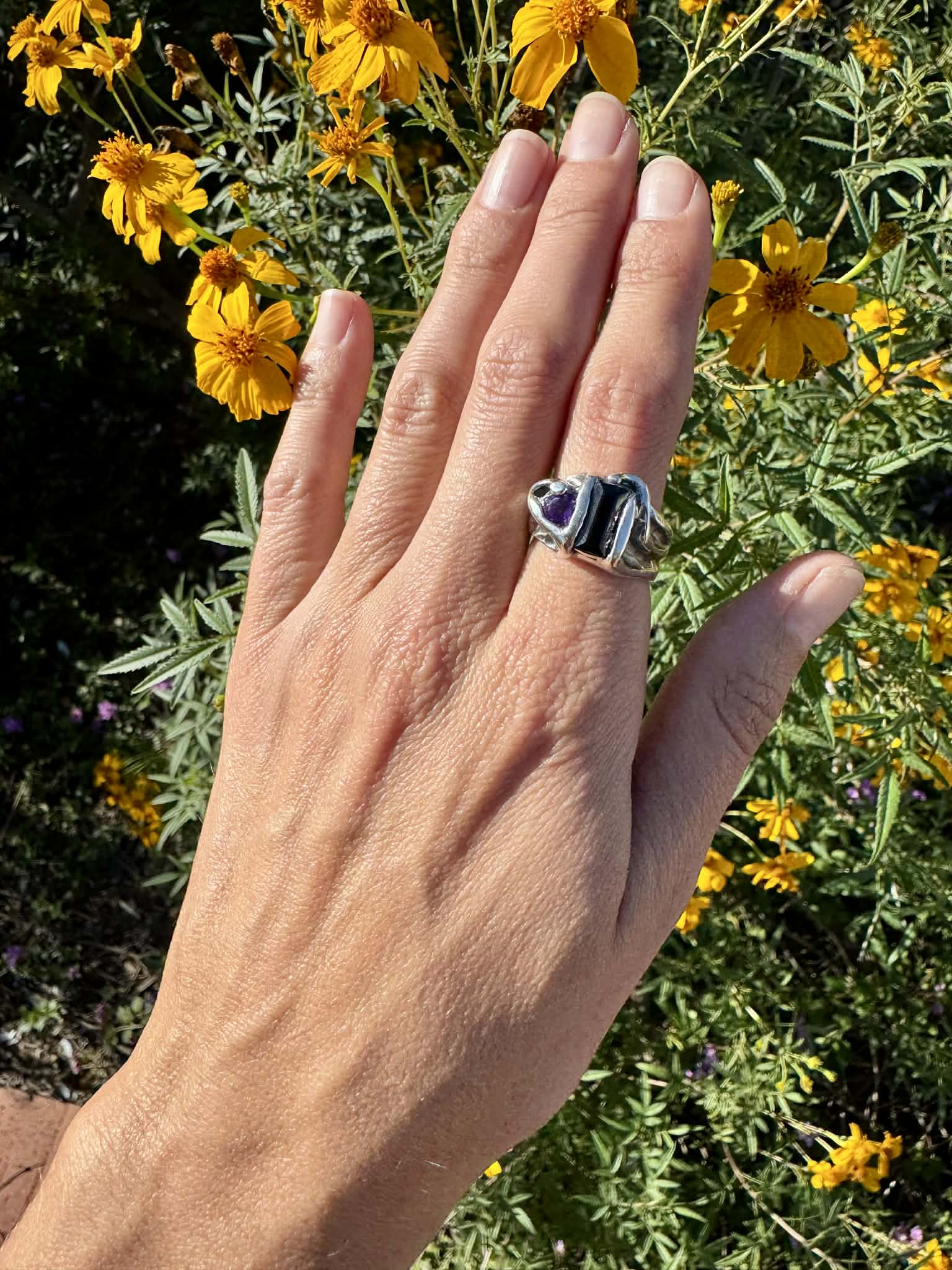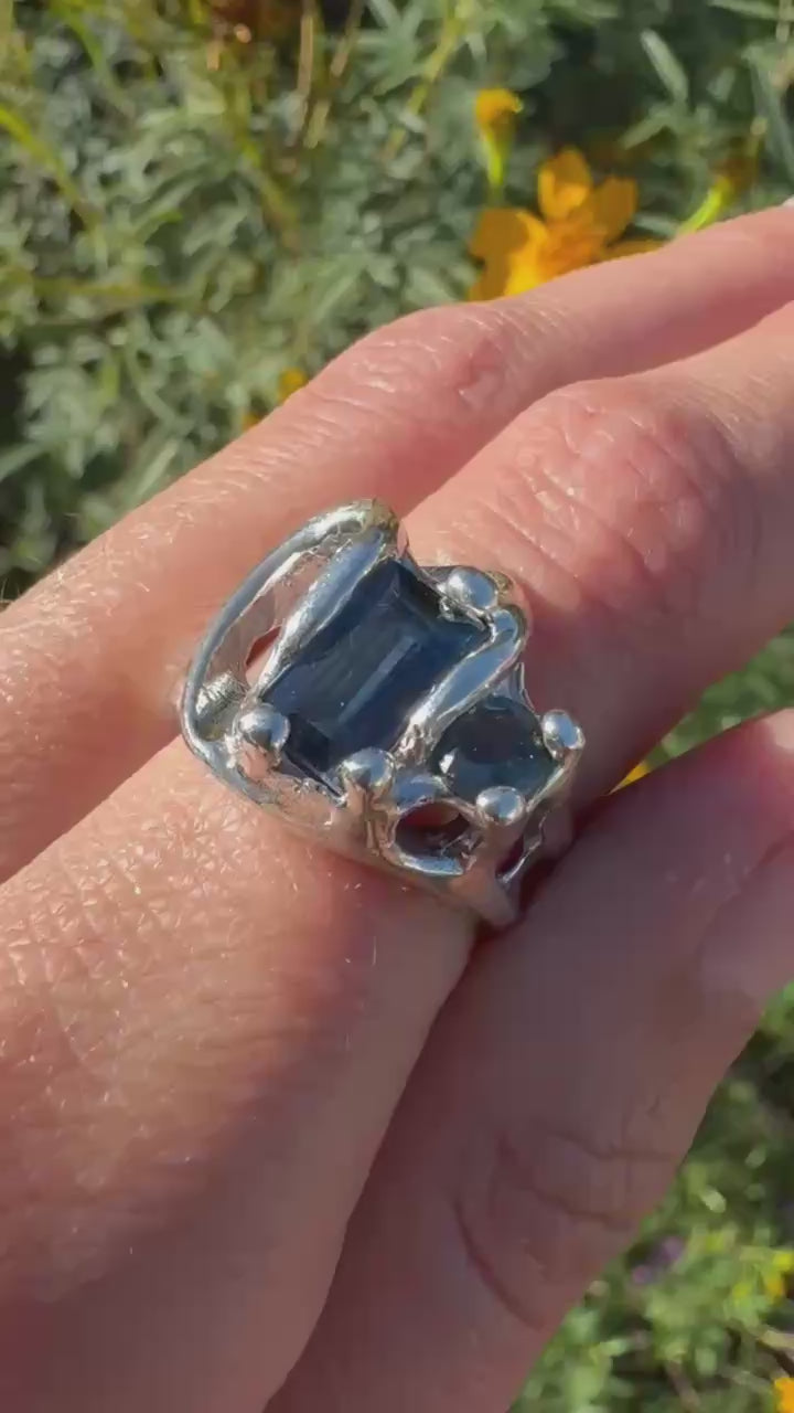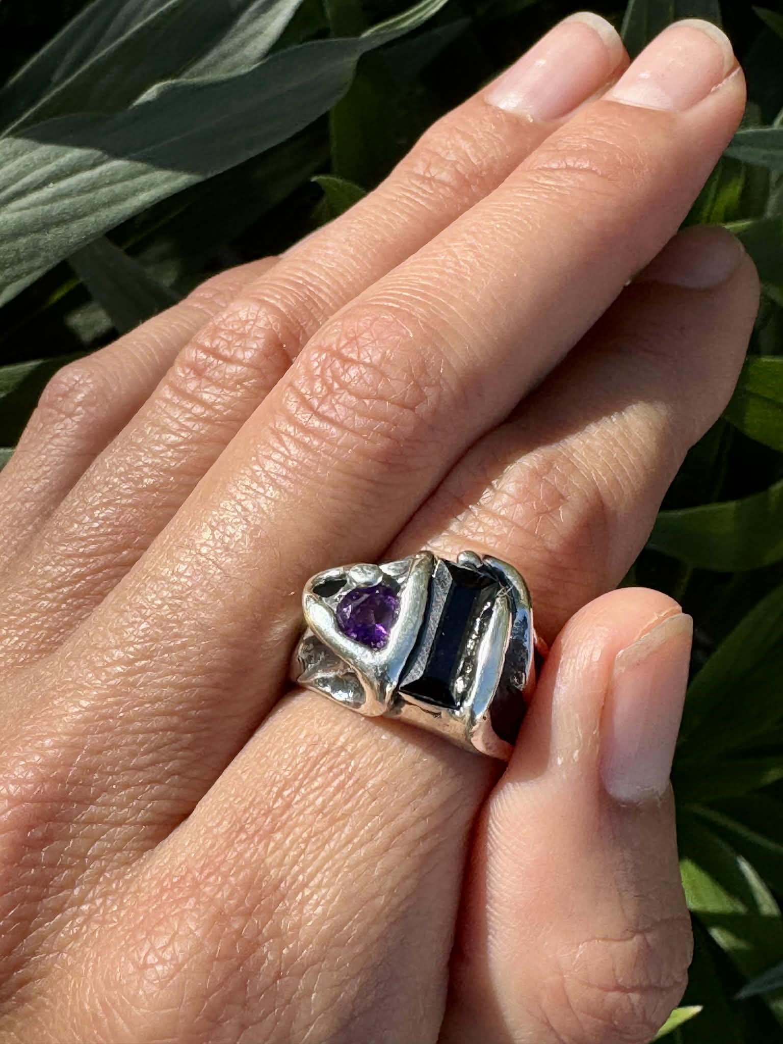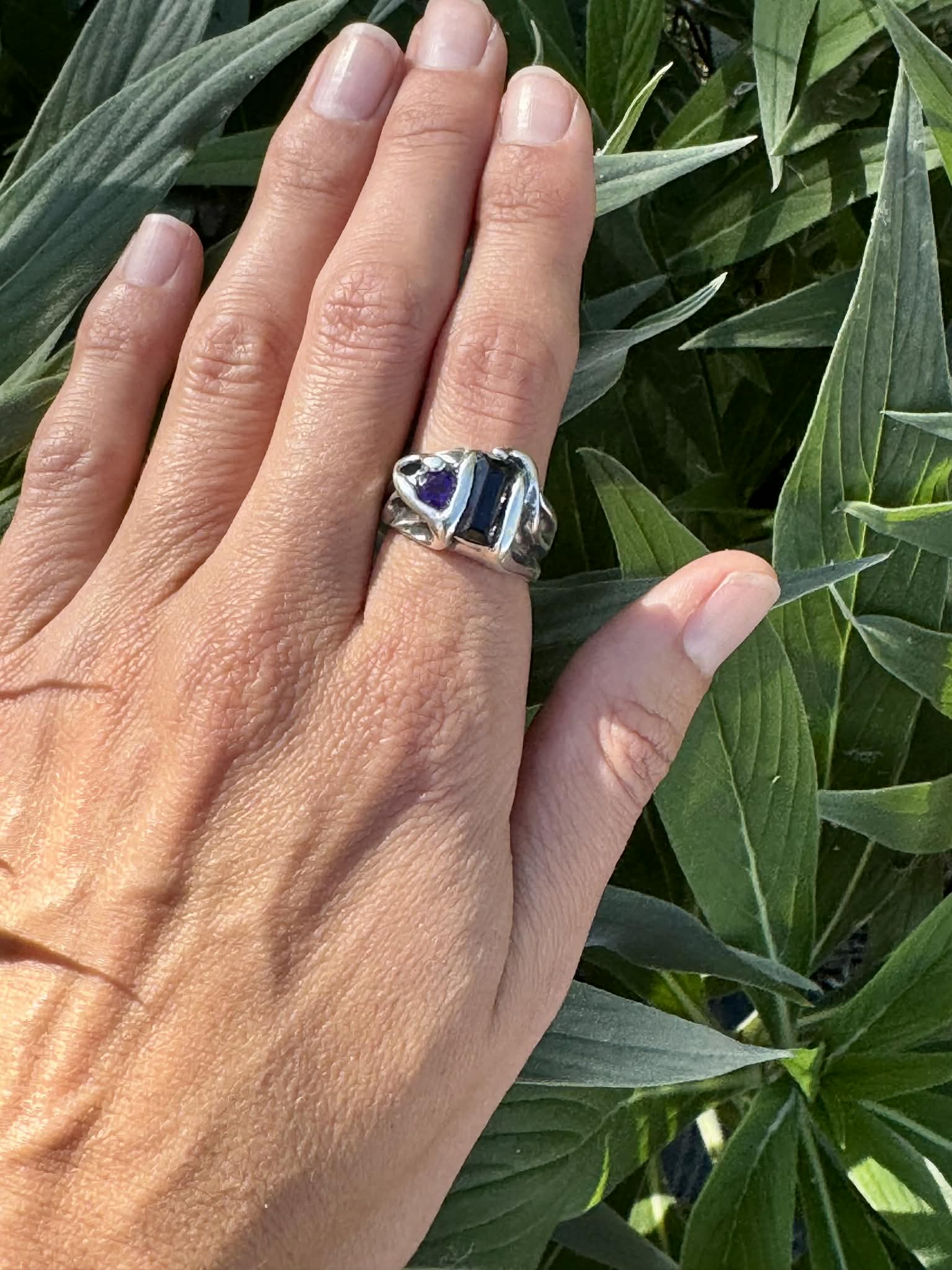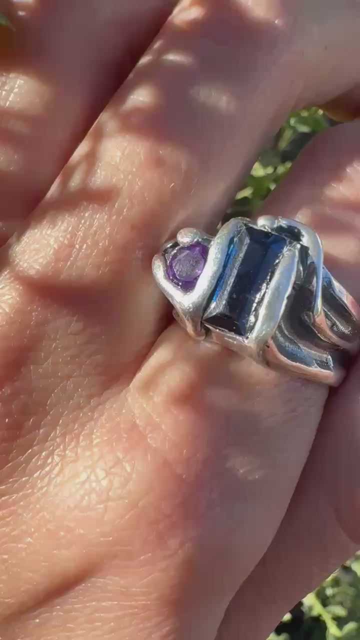 Silver 950 Kyanite and Amethyst Ring Size 9