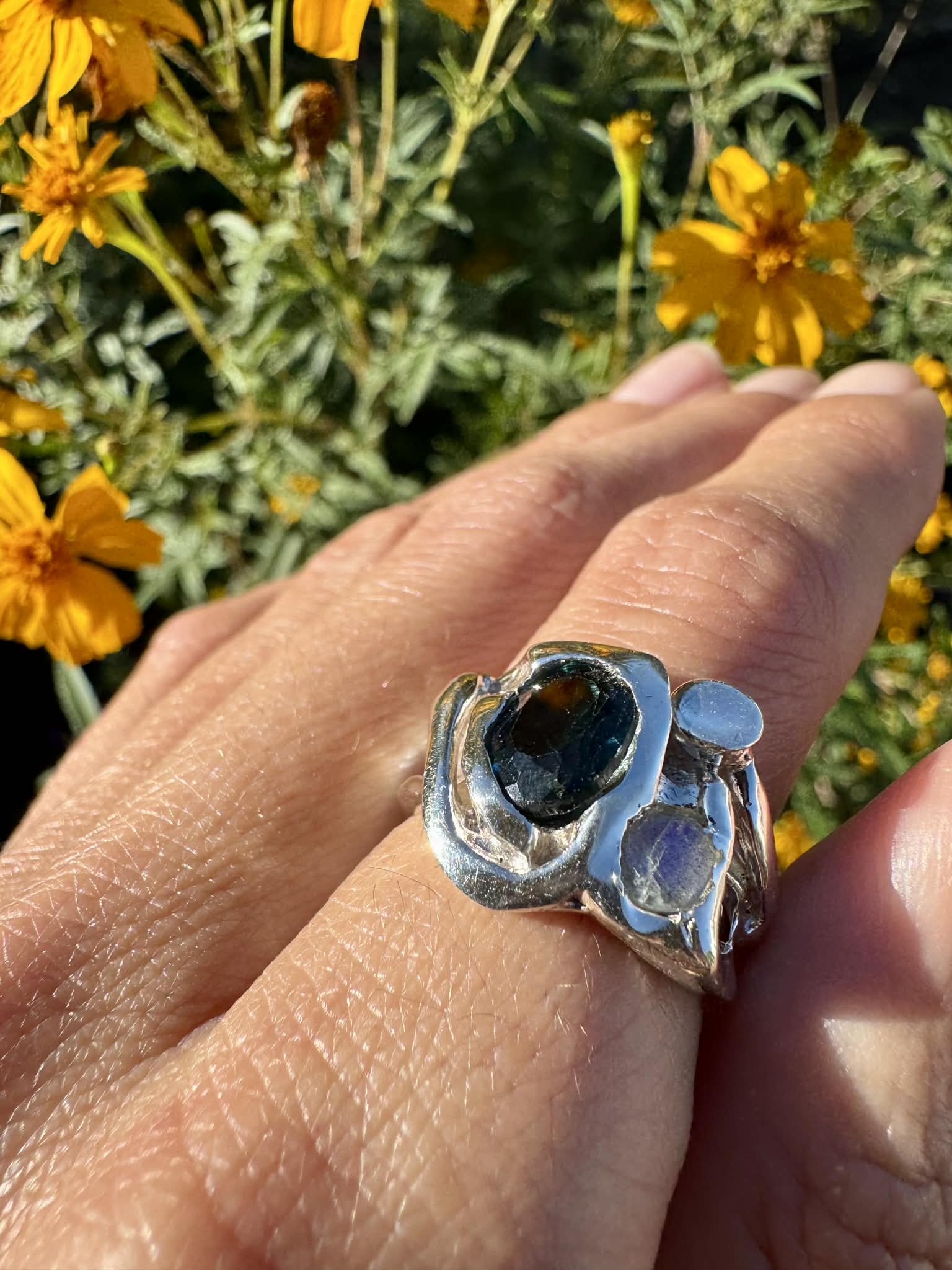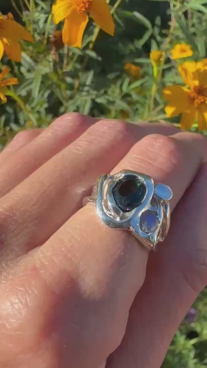 Silver London Topaz Moonstone Ring Size 7.5