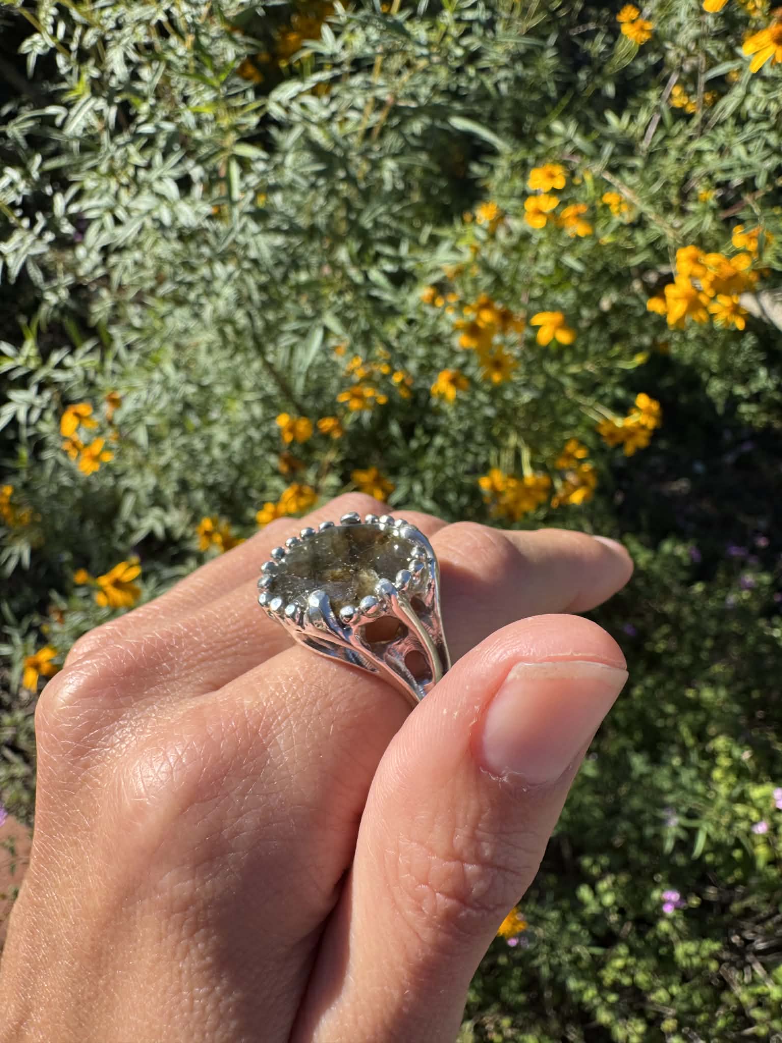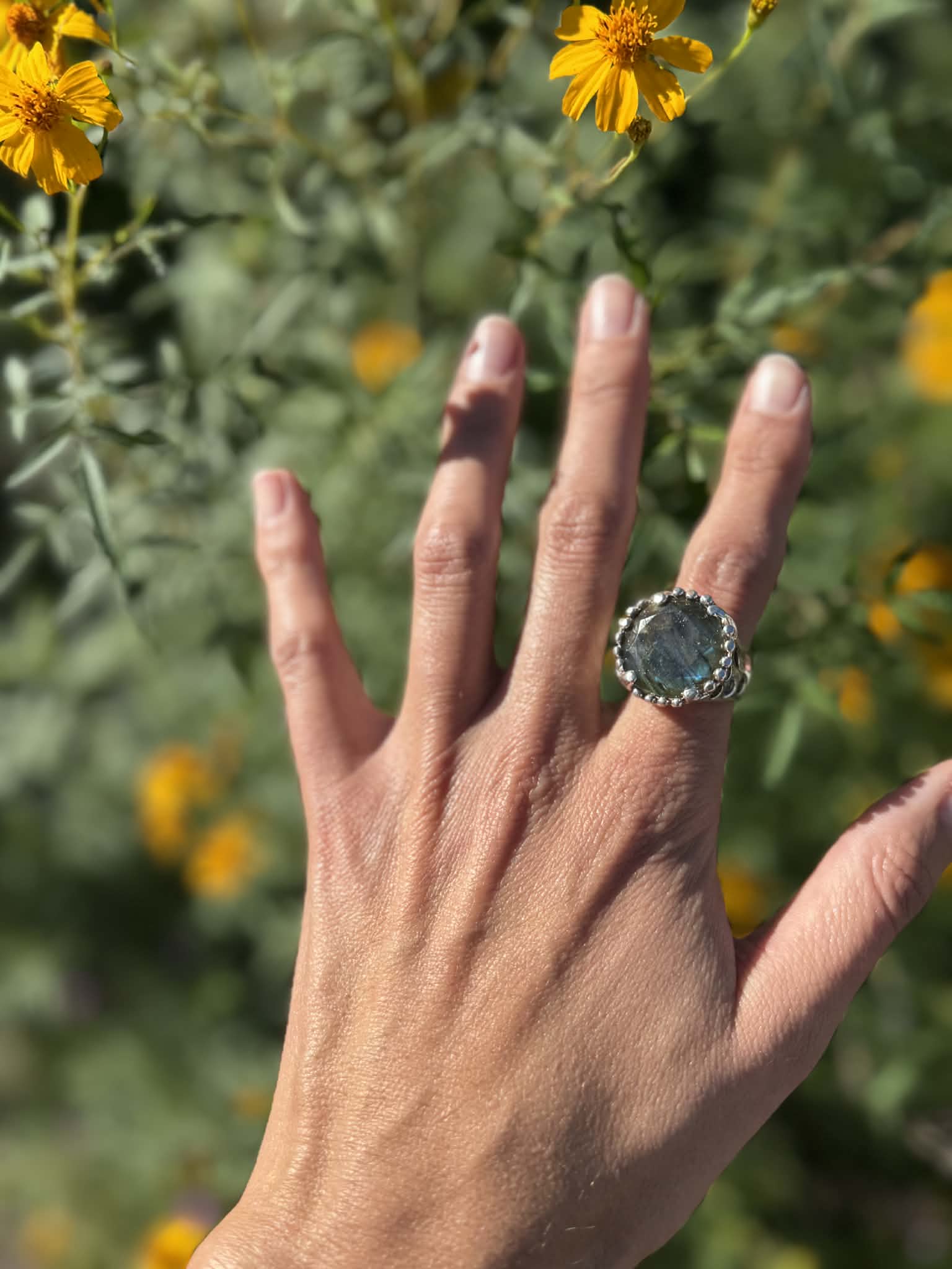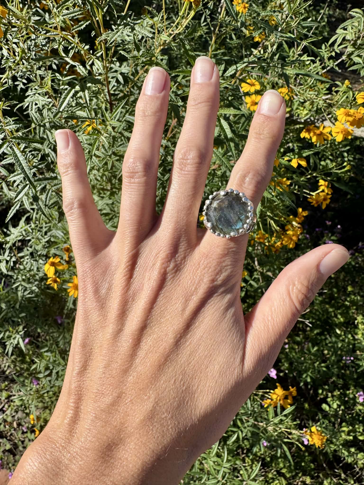 Silver Labradorite Ring Size 8